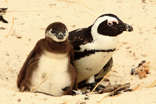 A pair of African penguins appreciate the sunset after a wonderful day frolicking in the waters off False Bay